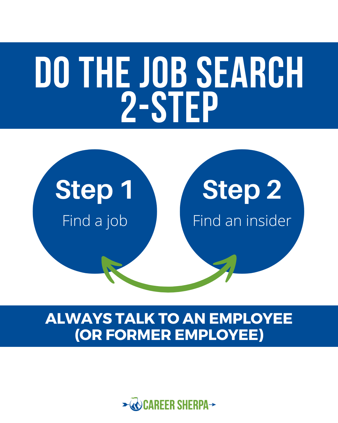 Before you apply, find employees you know. Use your in-person network, LinkedIn, or social media. (Former employees are also a good source of information!)