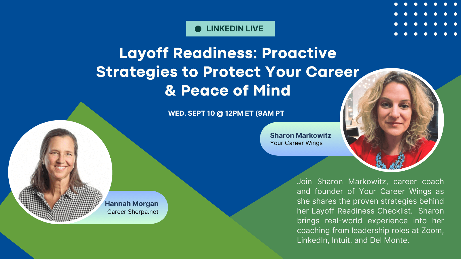 And if you are interested in learning more about how to regain control before, during and after a layoff, join Sharon and me for a LIVE conversation on Wednesday, September 10 at 12pm ET (9am PT). Use this link to sign up.